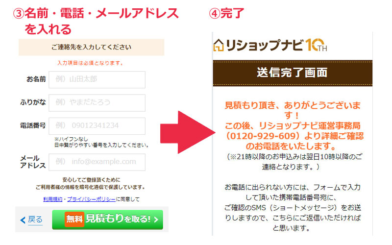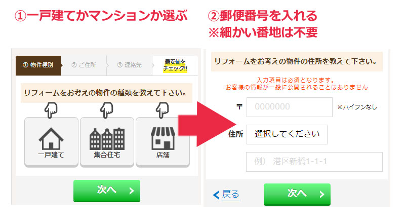 そこで見積もりを希望するリフォーム会社(もしくはお任せでもOK)を伝えるだけ。